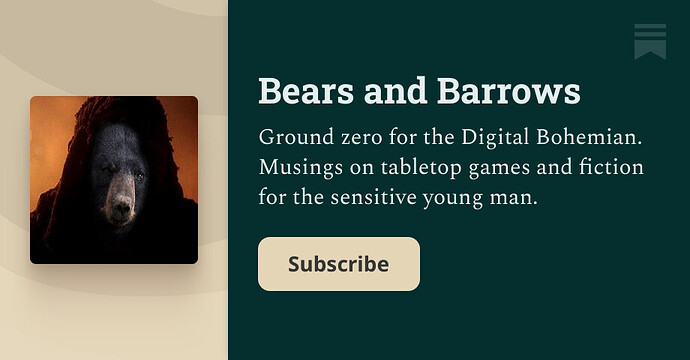 It never fails to amuse me to observe the correlation between a game that is interesting and run well and the GM and players who are functionally literate in the content of Appendix N. There simply is no game without them. We can see that in a literal sense in understanding that the farther the game has gotten from its source literature the stranger it has become to those who enjoy that literature, what the fuck am I expected to relate a Critical Role character to in Howardian fiction? The most obtrusive and gross trend in TTRPG is the invective that modern persons are to be represented in the game in a meaningful way, which from its inception in a community of historical wargamers to the publishing of material for the first time was never the case or intention. If you want to go play modern fighter go fuck with Black Powder Red Earth, wizards in that game are FA-18 Growlers you just imagine are covering your area of operations. TTRPG is about being a square jawed 9th century bludgeoner of that which goes bump in the night, anything else is wrinklegrass projection by elements of society who cannot personally relate to the historical fighting man and his mythic-historical context.